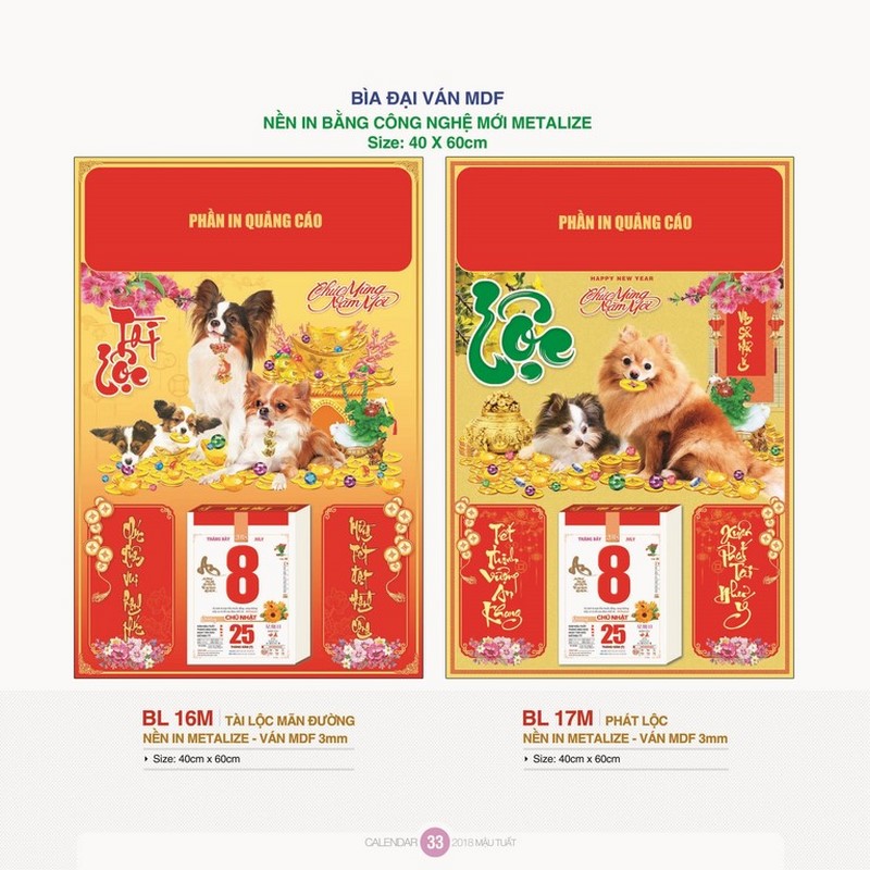 Chào xuân Mậu Tuất 2018, VPrint xin trân trọng mang đến cho quý khách bộ phông (bìa) treo lịch mang nhiều ý nghĩa và thiết kế đẹp mắt. Đặc biệt, chiết khấu lên đến 55% cho những đơn hàng lớn. Hãy liên hệ VPrint ngay để nhận ưu đãi đặc biệt!